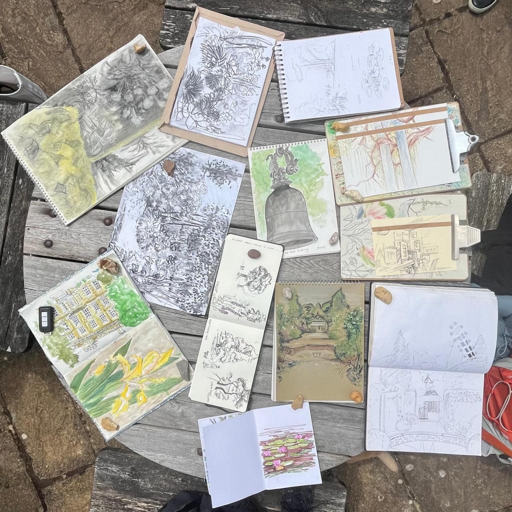 Over the spring and summer months, Cowprint members have been out and about sketching in some lovely locations including Acre Down and Exbury Gardens in the New Forest.