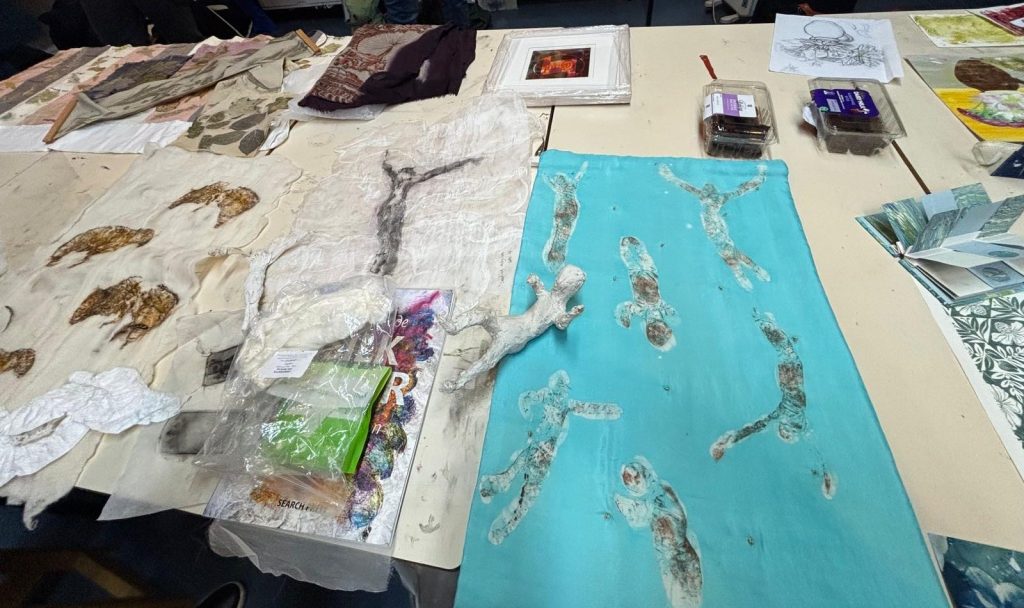 At our October meeting members brought along examples of their work to share how print, paint, textiles, stitchwork and other techniques and materials are used by our talented and diverse group of artists. We had a great evening and everyone went away with some new and stimulating perspectives and ideas.
