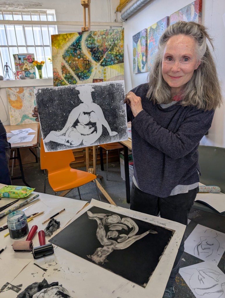 Getting together for a day of creating, printing and sharing ideas has taken an exciting turn in 2026 for Cowprint members! We’re hiring the very talented Jo Morley‘s well equipped and bright studio space for members to explore and develop their practice and work together.