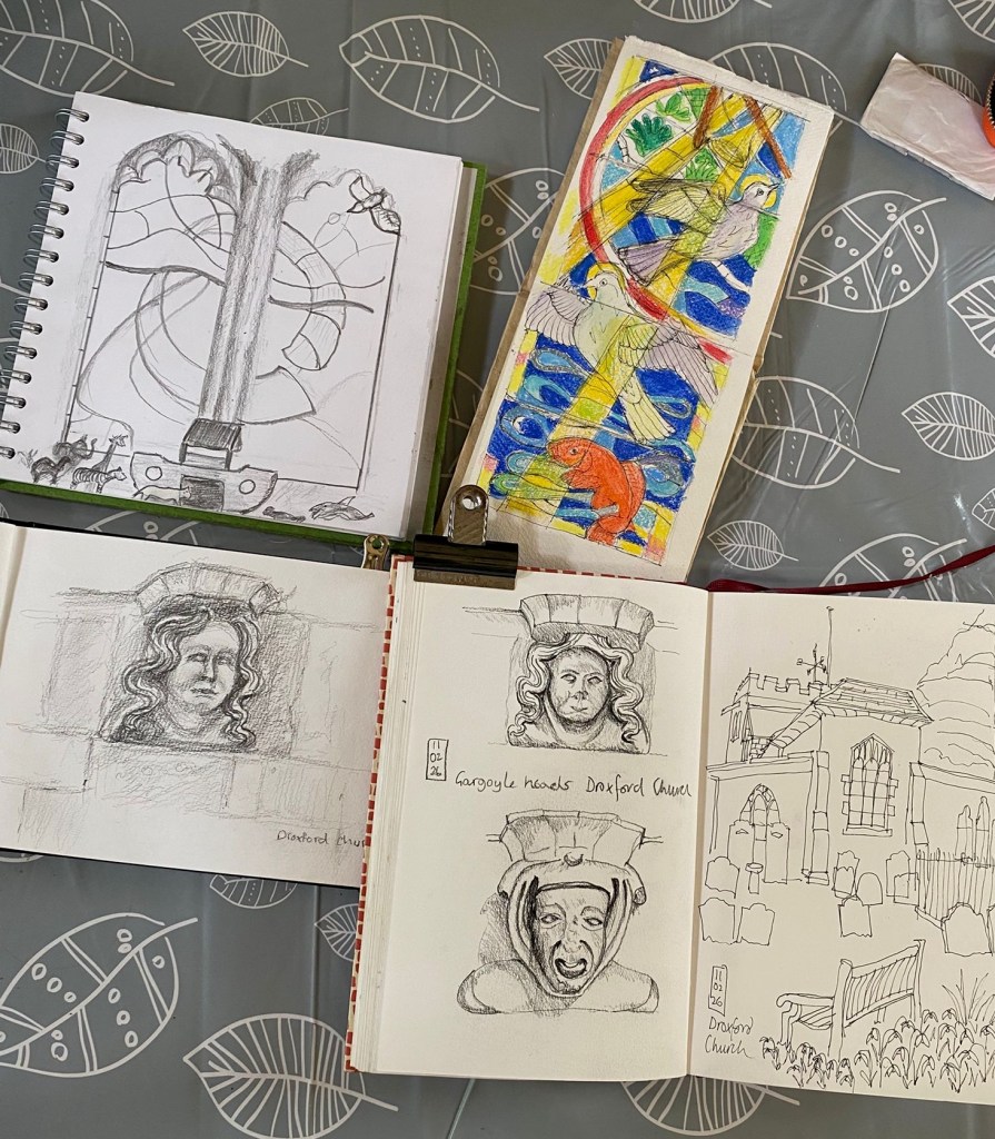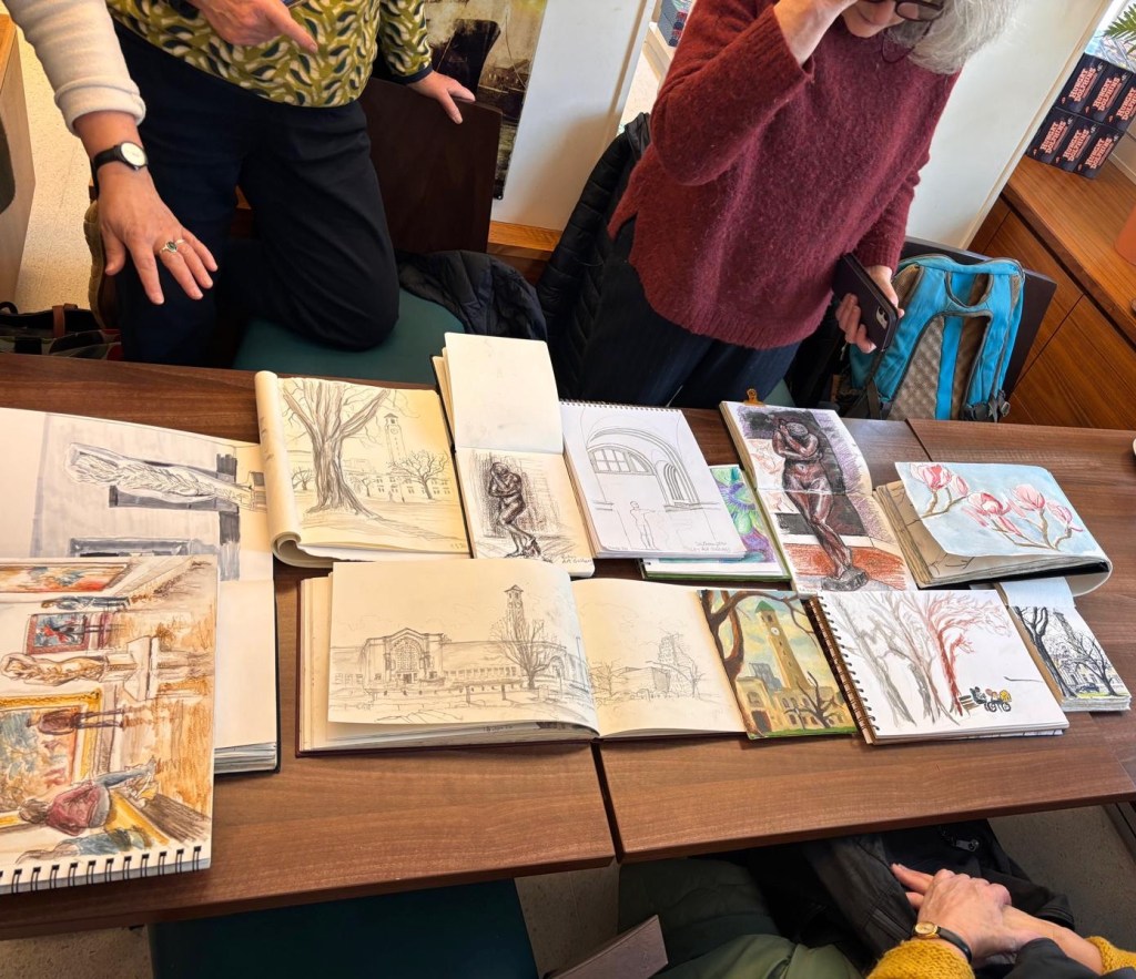 Cowprint sketchers have been out and about again – at Droxford Church in February and in March at the newly re-opened Southampton City Art Gallery.