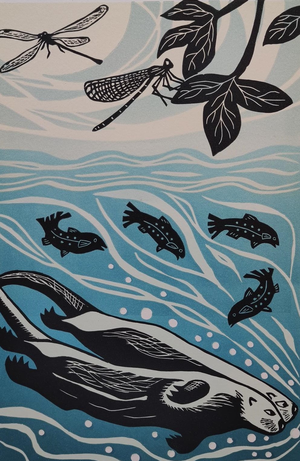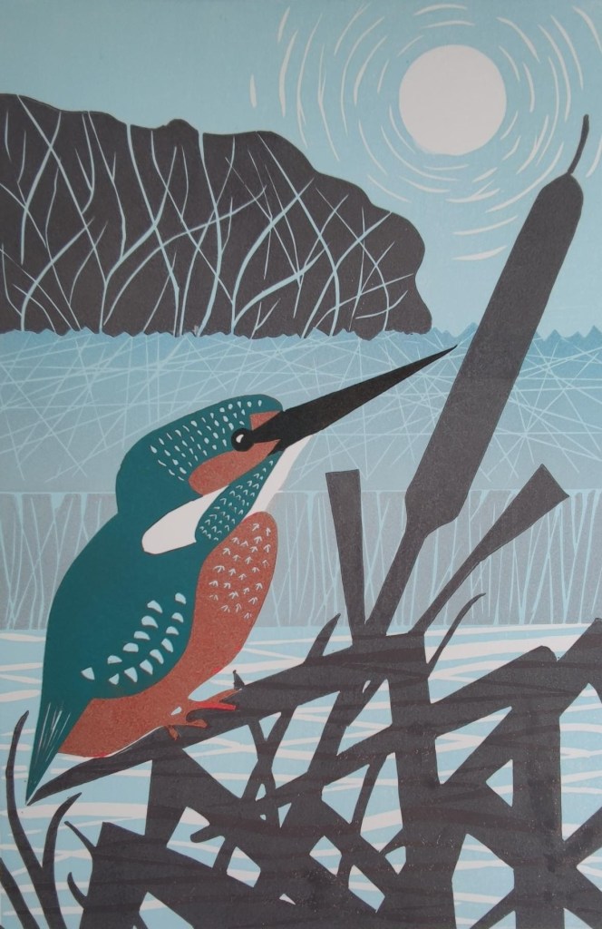 The landscape and wildlife in Wiltshire are major inspirations. The nature reserve at Langford Lakes has been a constant source of ideas and I sell many of my prints at the Kingfisher Café there.