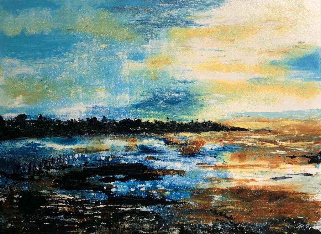 After abandoning an offer for Art College 35 years ago to go to work she is now an artist and fine art printmaker. An introductory lino printmaking course in 2018 sealed the deal and her journey in creativity resumed. She works from her home studio but more often her kitchen.