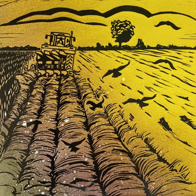 Printmaking provides a finished artwork which is very different to my acrylic paintings, but I love both media for their versatility and range. After a course at the Red Hot Press in Southampton exploring many printing techniques, relief printing, particularly linoprinting, became my print medium of choice. I have also studied Botanical drawing and painting with the Society of Botanical Artists in London. As well as landscapes, botanical work features regularly in my both my printmaking and acrylic paintings.