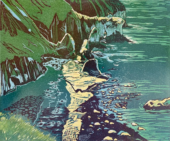 From my earliest memories, I have always painted and was always painting. I can’t remember the exact moment when I learned to linoprint but it was early. When I took early retirement from my job as a biotech Patent Attorney I wanted a structure to my first year to ease me into the retired life and I found a year long foundation course in printmaking at the Red Hot Press in Southampton. I learned all type of printmaking from intaglio to relief, but my love of linoprinting was cemented in that course.