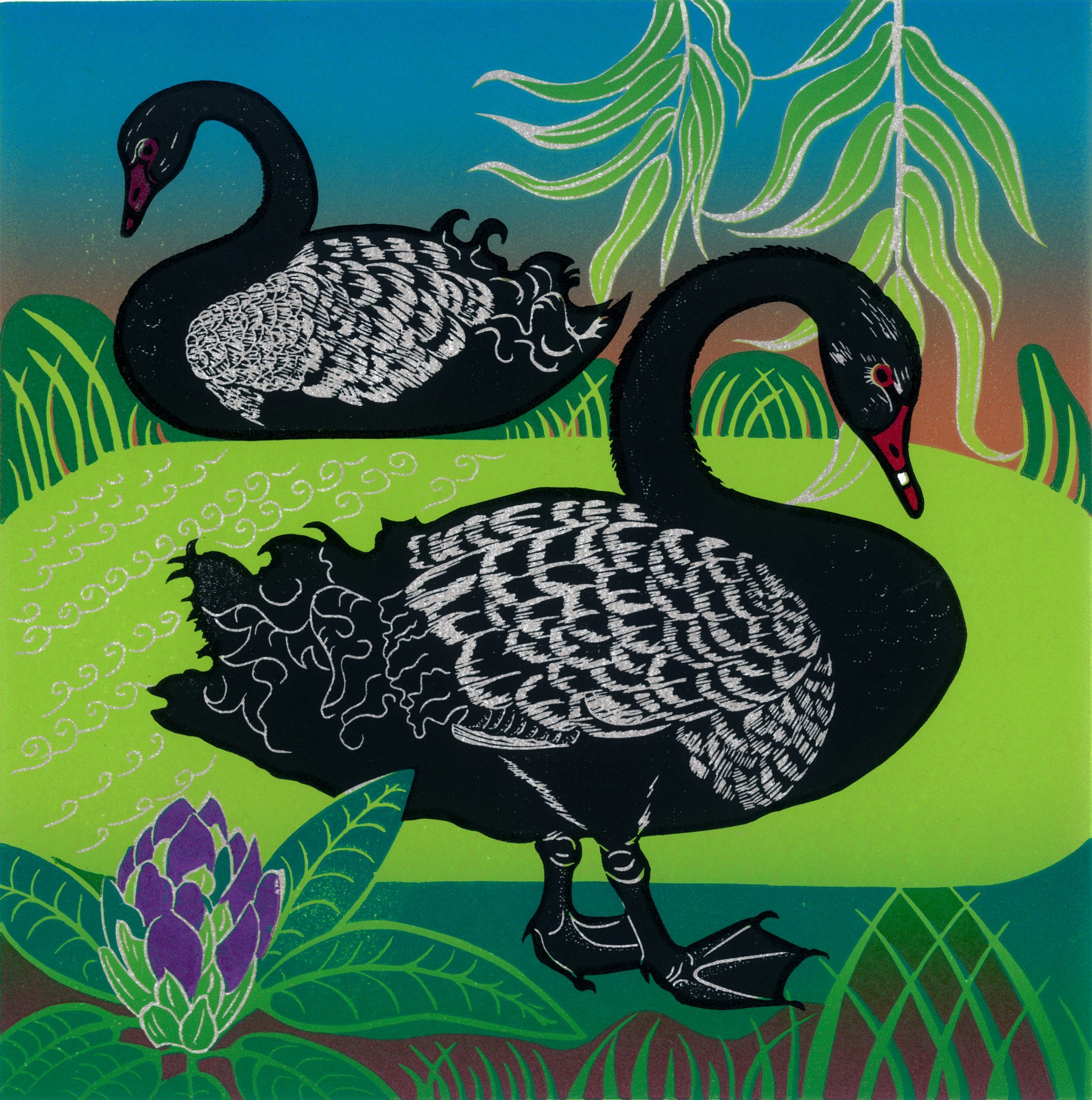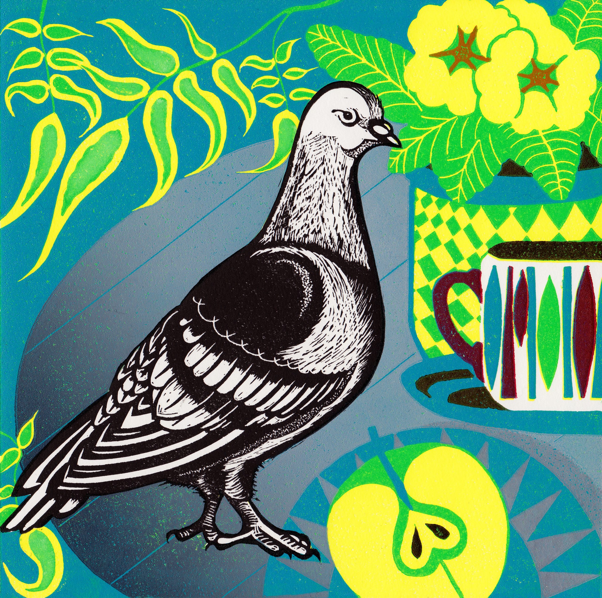 Catherine Rogers is a printmaker based in Hampshire influenced by birds in their habitats, local landscapes, and still life. She enjoys watching and drawing the more common and often overlooked birds, such as pigeons and seagulls, which have adapted to living around humans. Most of her prints are therefore bird-related!