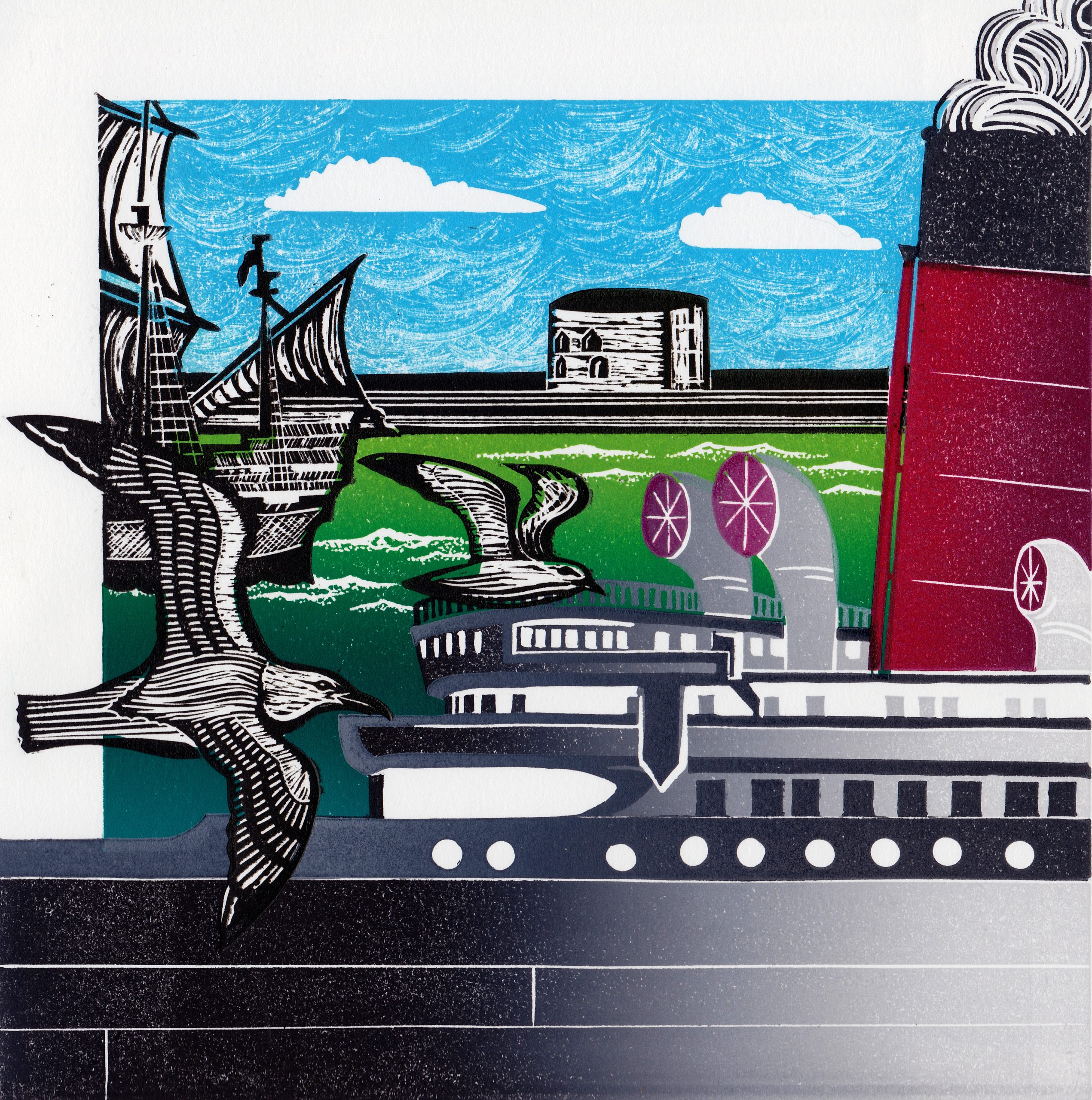 “I was initially drawn to the graphic-like image qualities associated with linocut, but after studying foundation and diploma printmaking courses at the Red Hot Press in Southampton, I learnt to explore a range of other techniques. However, relief printing is still my preferred process, although from time to time I do experiment with other techniques, and I also enjoy collage making as an alternative. Collage allows me to understand layering, which relates to printmaking, and it is also an opportunity to reuse any prints that haven’t quite worked! ”