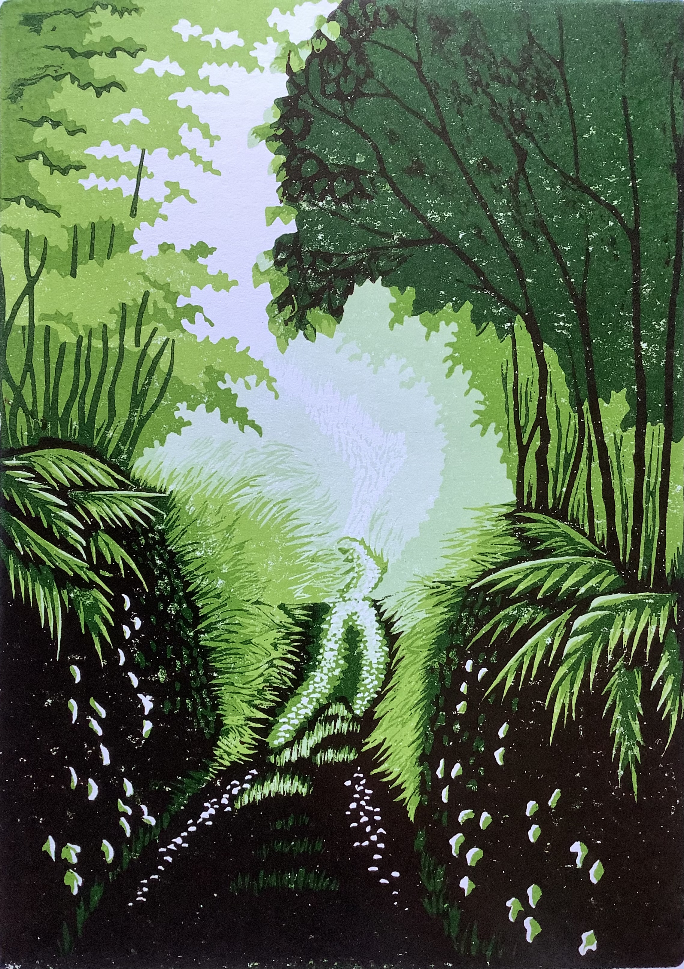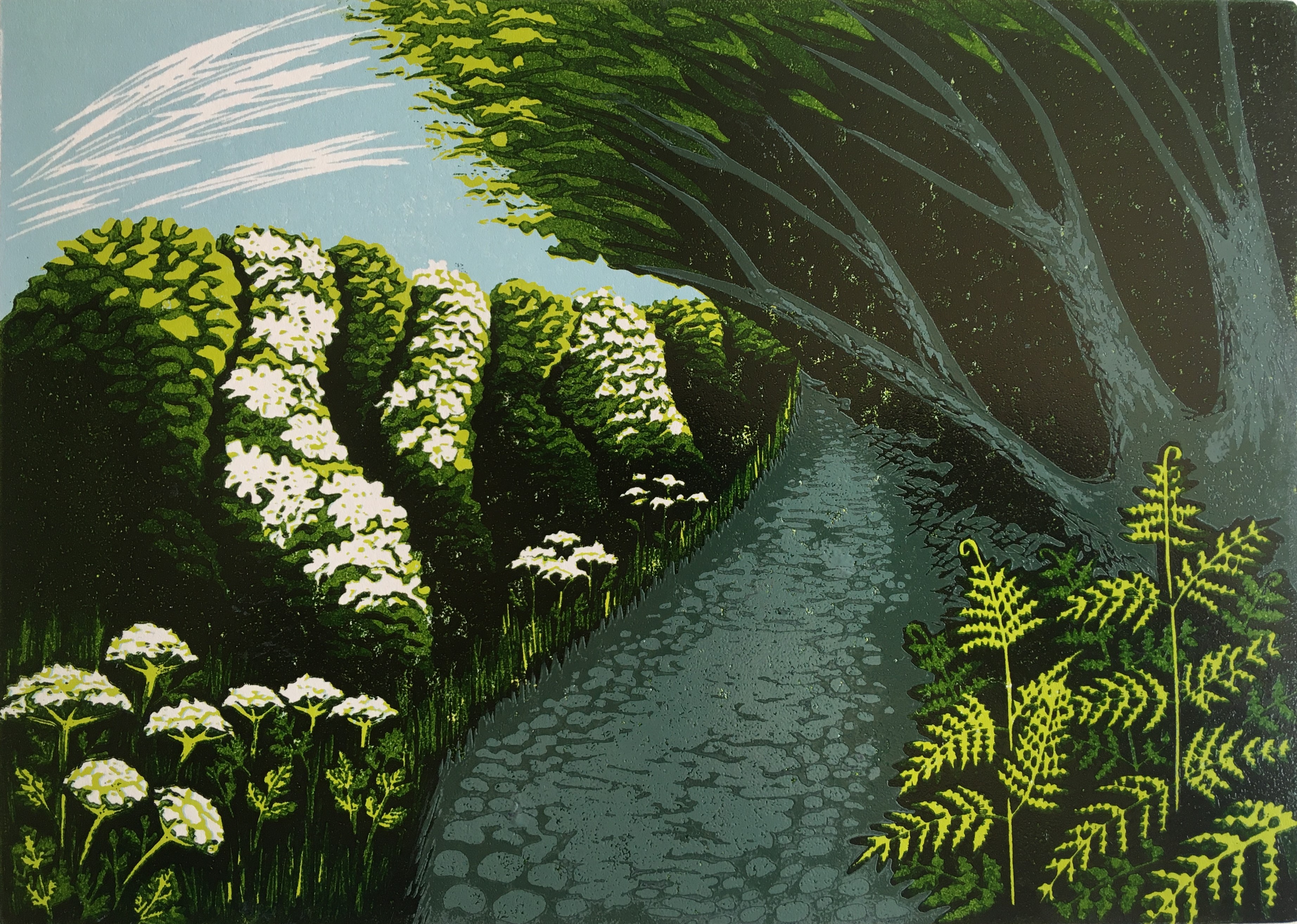 I am prompted by a love of landscape and the natural world. I sometimes use a sketch made in situ as a starting point, or I take a photo for reference, and then adapt the image until it will work well as a print.