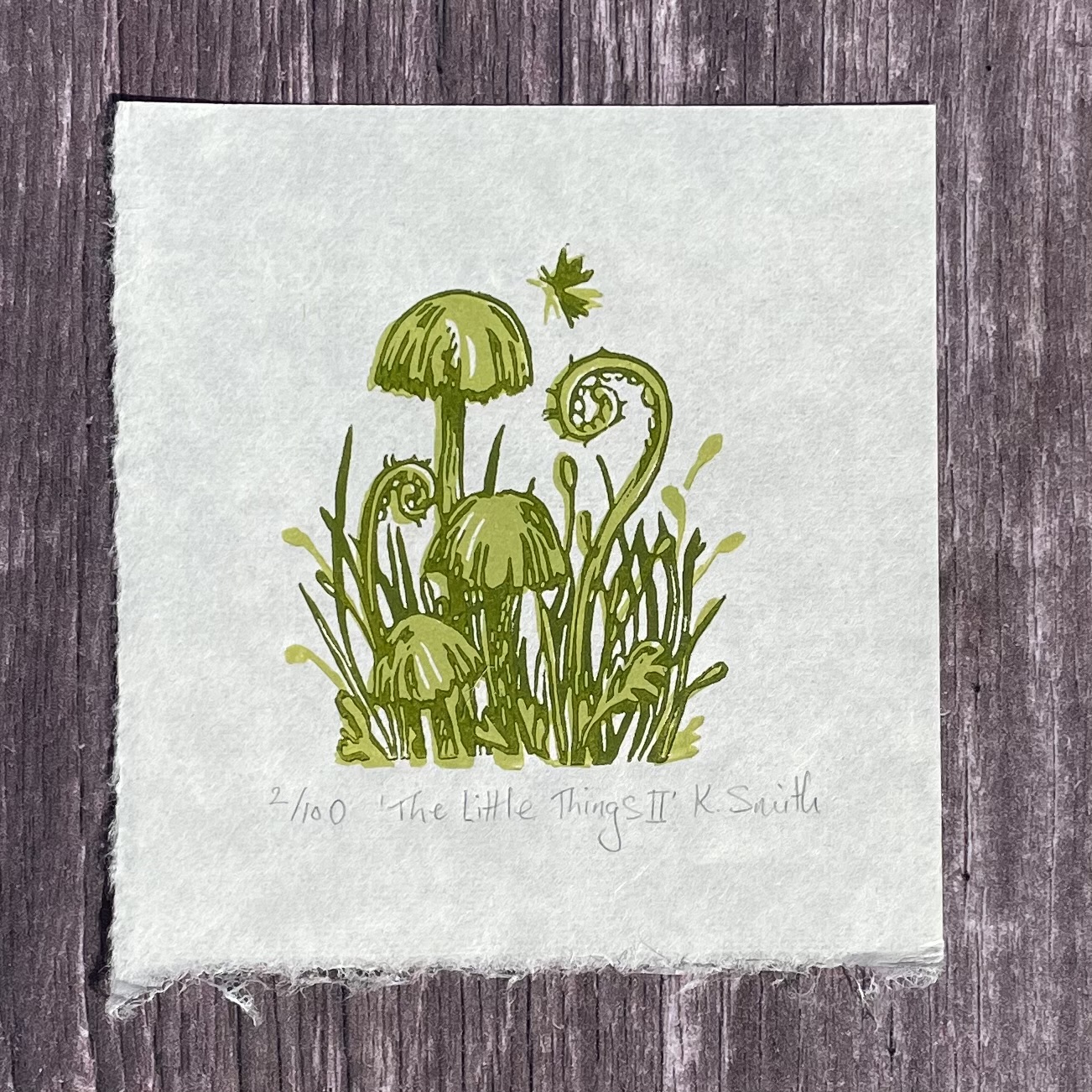 I enjoy carving lino the most. I find a flow state takes over and it’s like I’m in another world. I have a love/hate relationship with inking up. I don’t like to get messy but when I get into a playful state of mind I can let that go and enjoy the process.