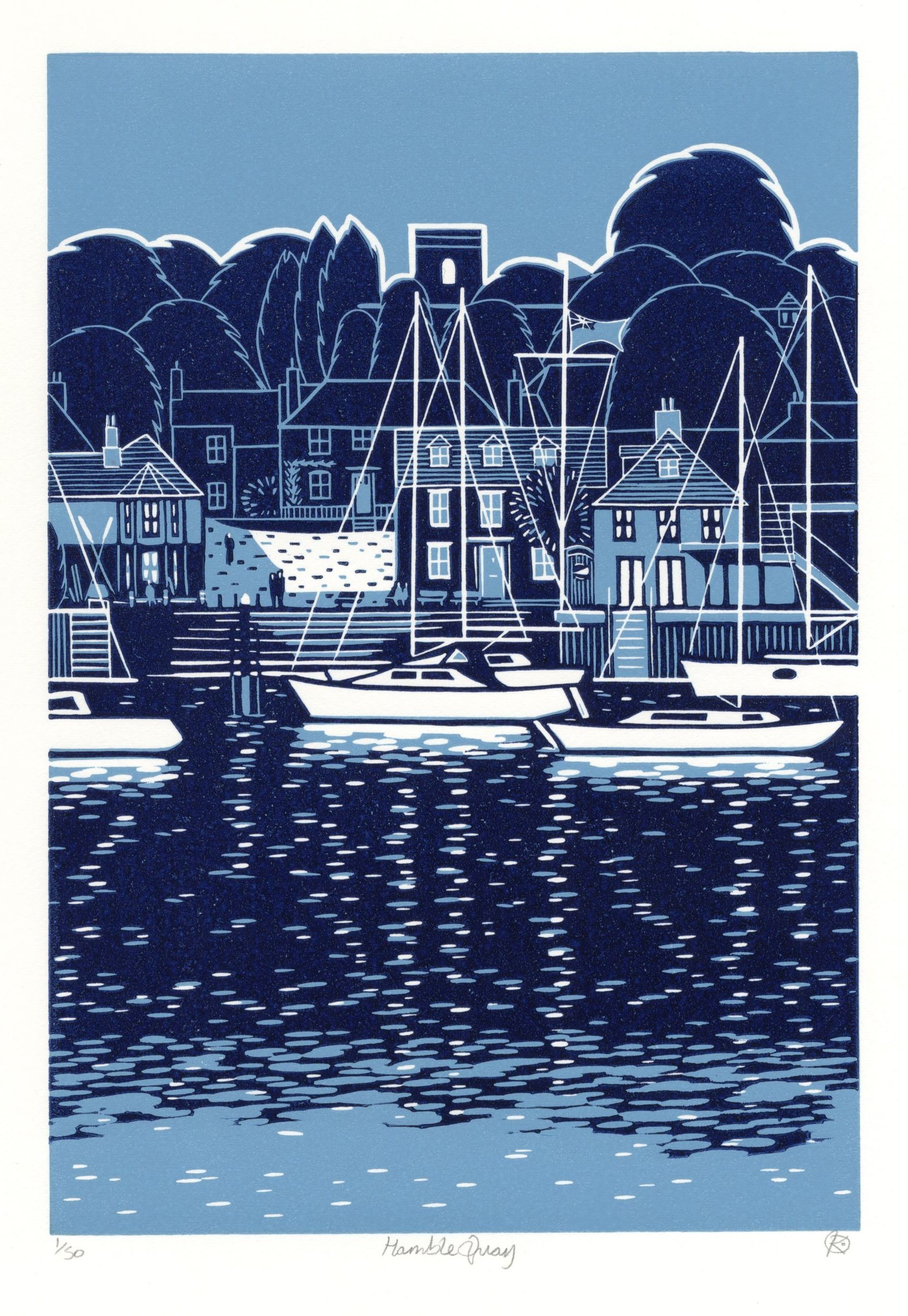 I am an artist printmaker based in Hamble, a Hampshire village with a rich maritime history. It is this location, a love of the natural world, landscapes and seascapes, and my adventures sailing, cycling and long-distance walking that provide inspiration for my prints and sketches.