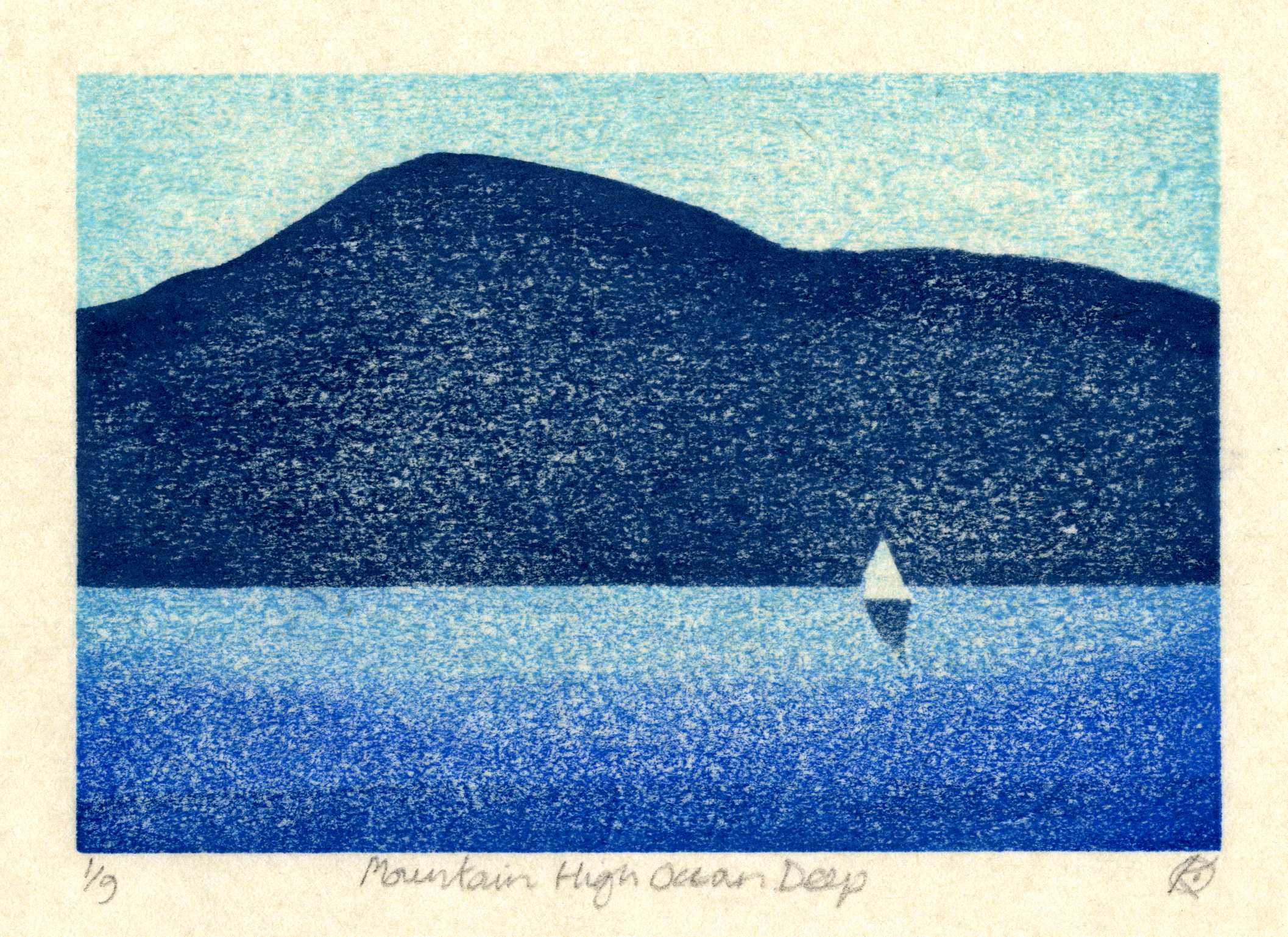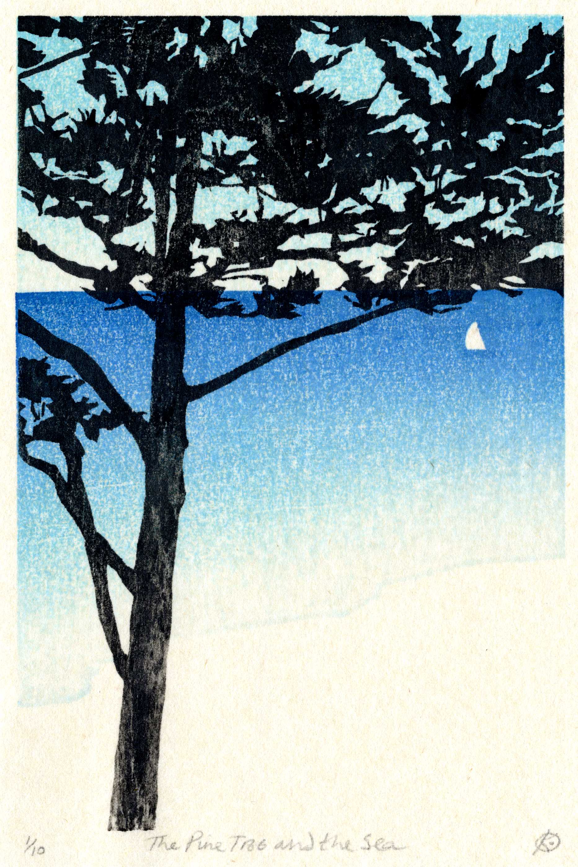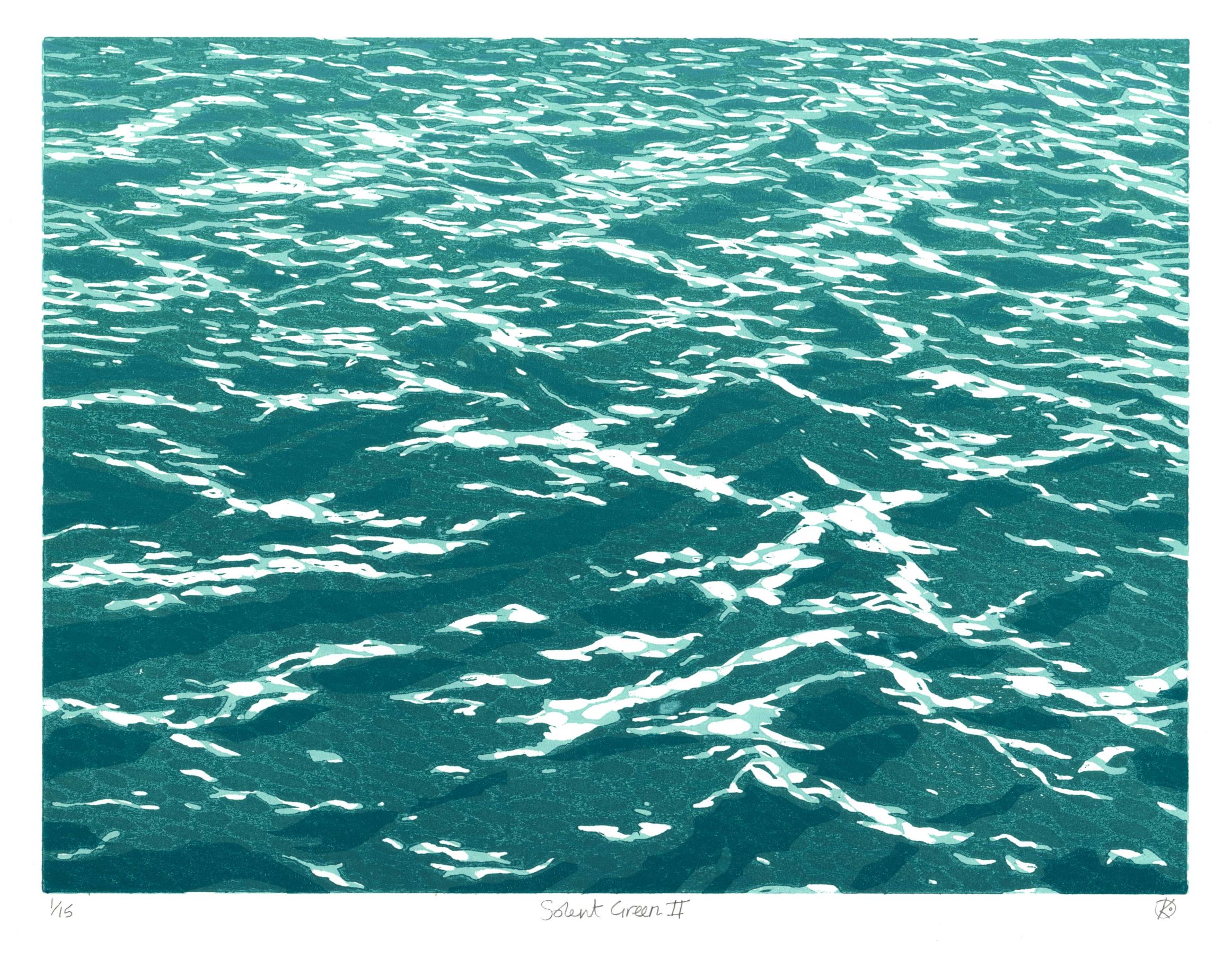 These techniques, the mark making and the grain of a wood block, seem well suited to creating prints that capture the wild beauty of the sea, its movement, wave patterns and reflections of light, reminding me of times sailing out of sight of land on the seemingly infinite open sea.