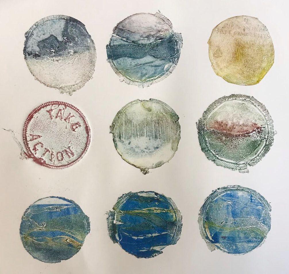 Her printmaking journey began at Winchester School of Art, continuing through courses and access at RedHotPress and Badger Press. Recycling has become a central theme in her work, prioritizing sustainable practices and non-toxic substances that minimize ecological impact.